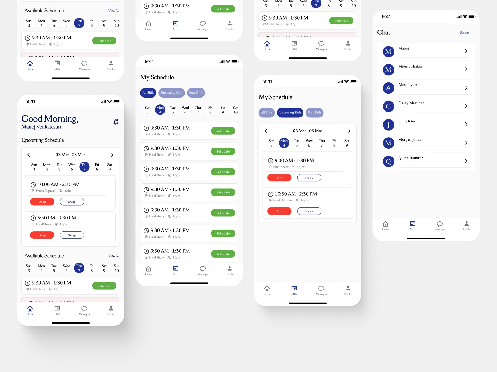 Syracuse University Food Services managed 200+ student shifts on paper. I designed a mobile app that lets students view, schedule, swap, and drop shifts without ever needing to track down a supervisor.