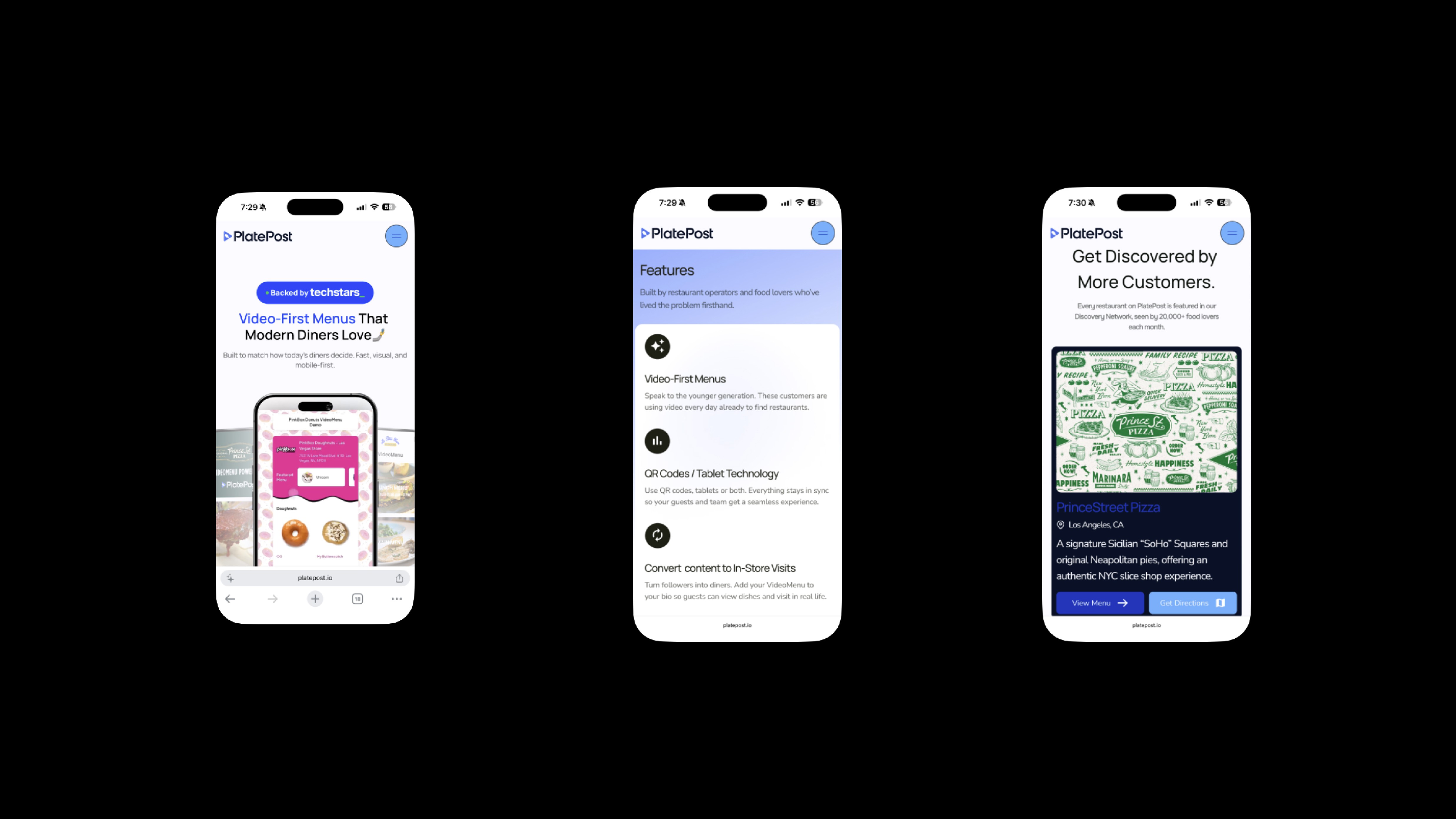 Restaurants spend thousands on food photography that lives on Instagram and dies on their website. I designed PlatePost's entire product experience, from the marketing site to the white-label VideoMenus that restaurants use in-store, to make food video the center of the dining decision.
